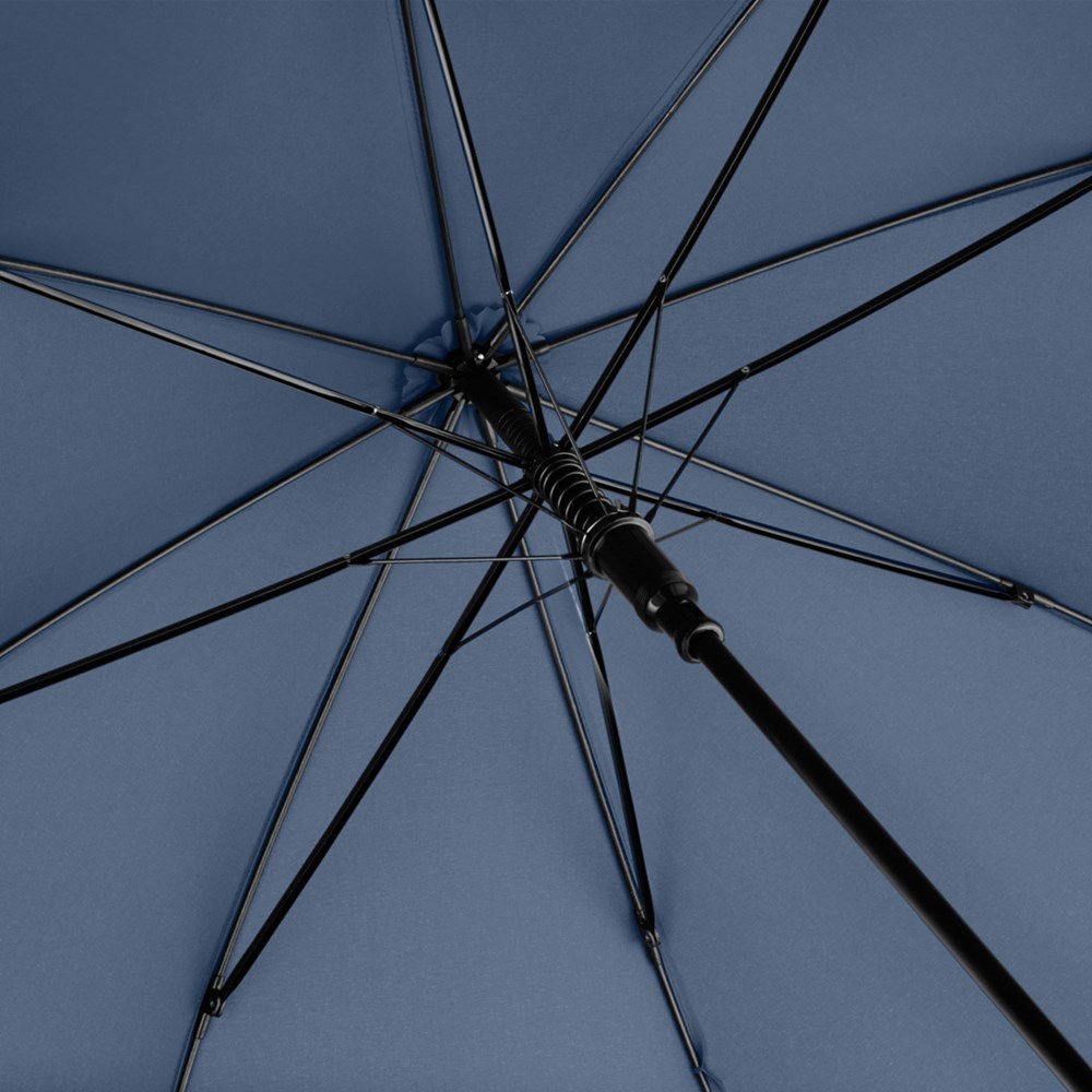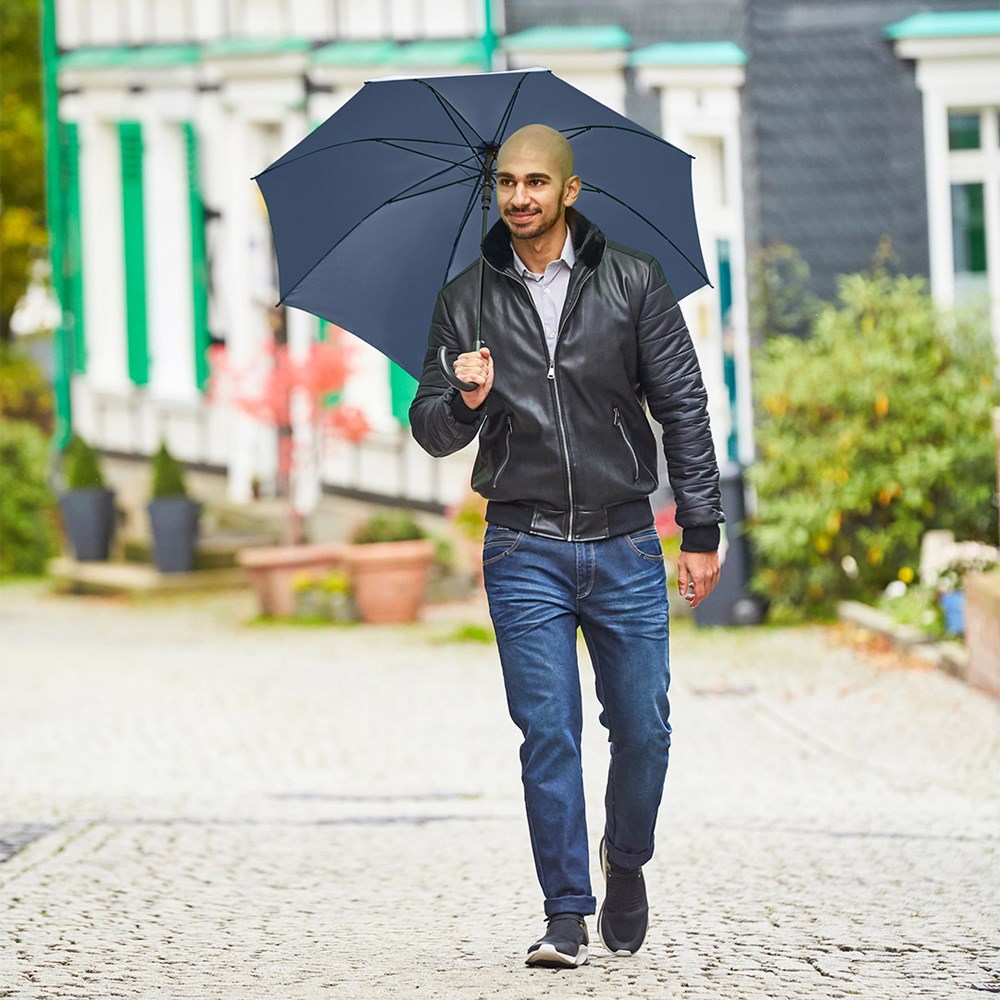 Preislich attraktiver Automatik-Stockschirm mit Windproof-System Komfortable Automatik-Funktion zum schnellen Öffnen, Windproof-System für höhere Gestell-Flexibilität und bessere Windsicherheit, flexible Fiberglasschienen, matt-schwarzer Kunststoff Rundhakengriff, höherer Korrosionsschutz durch schwarze Galvanisierung des Stahlstocks. Auch als Gästeschirm (Art. 2359) erhältlich.