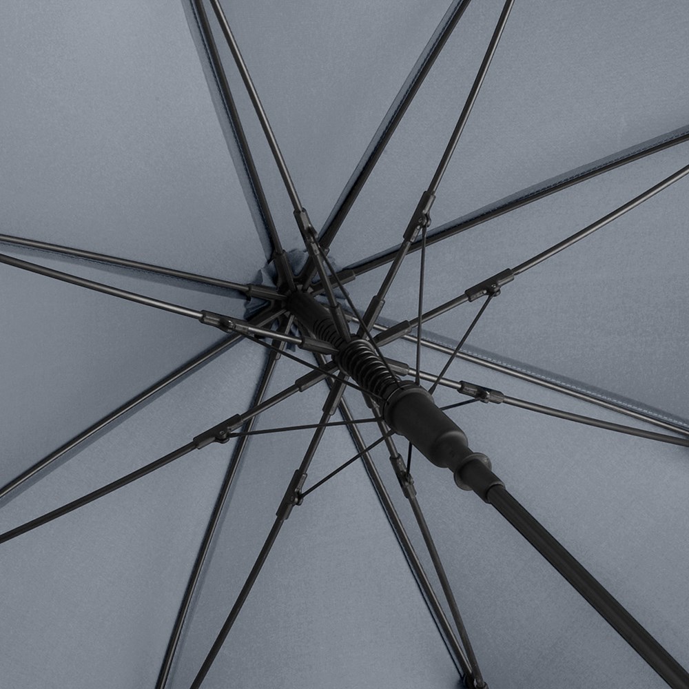Ansprechender Automatik-Stockschirm in konsequent einheitlicher Farbgebung Komfortable Automatik-Funktion zum schnellen Öffnen, hochwertiges Windproof-PLUS-System für eine maximale Gestell-Flexibilität bei stärkeren Windböen, flexible Fiberglasschienen, stabiler Stahlstock, Soft-Touch-Griff und -Top farblich auf den Bezug abgestimmt, Griff mit integrierter Auslösetaste und Werbeanbringungsmöglichkeit, höherer Korrosionsschutz durch schwarze Galvanisierung des Stahlstocks