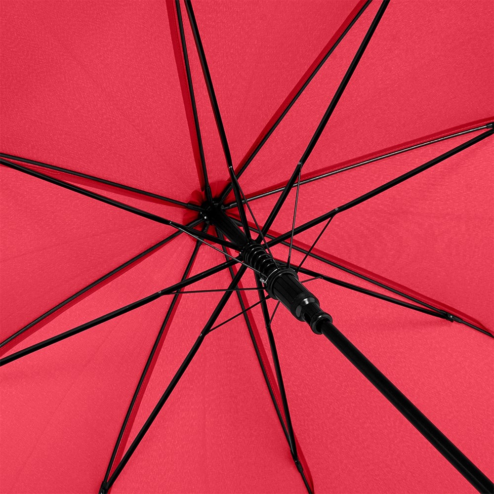Preislich attraktiver nachhaltiger Stockschirm mit Bezug aus recycelten Kunststoffen Komfortable Automatik-Funktion zum schnellen Öffnen, Windproof-System für höhere Gestell-Flexibilität und bessere Windsicherheit, flexible Fiberglasschienen, Polyester-Pongee Bezugsmaterial aus recycelten Kunststoffen, farbabhängig auch mit waterSAVE®-Bezugmaterial und mit waterSAVE® Label auf dem Schließband erhältlich, Echtholzspitzen, Rundhakengriff aus Echtholz, höherer Korrosionsschutz durch schwarze Galvanisierung des Stahlstocks