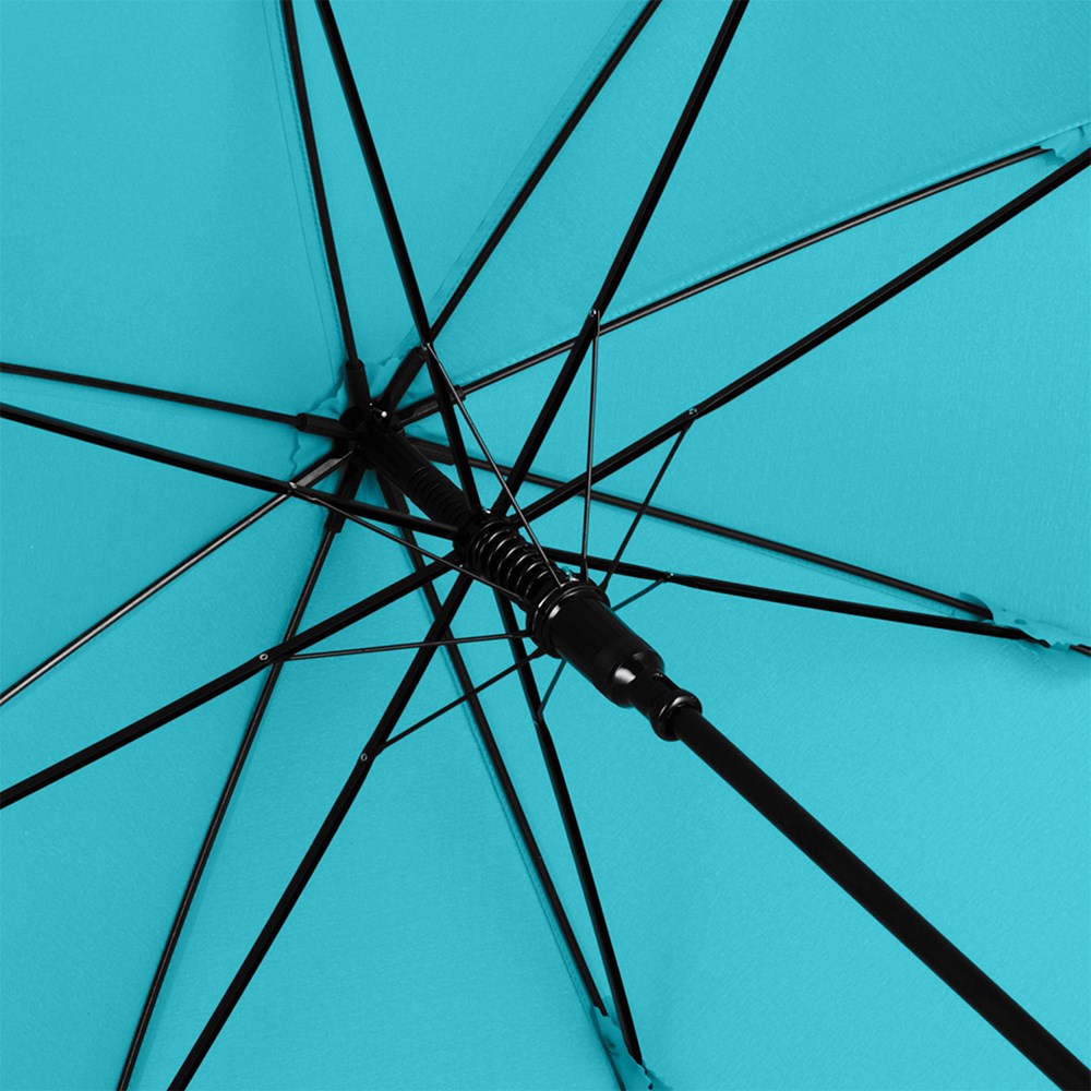 Preislich attraktiver Automatik-Stockschirm mit Windproof-System Komfortable Automatik-Funktion zum schnellen Öffnen, Windproof-System für höhere Gestell-Flexibilität und bessere Windsicherheit, flexible Fiberglasschienen, matt-schwarzer gerader Kunststoffgriff mit Werbeanbringungsmöglichkeit, höherer Korrosionsschutz durch schwarze Galvanisierung des Stahlstocks