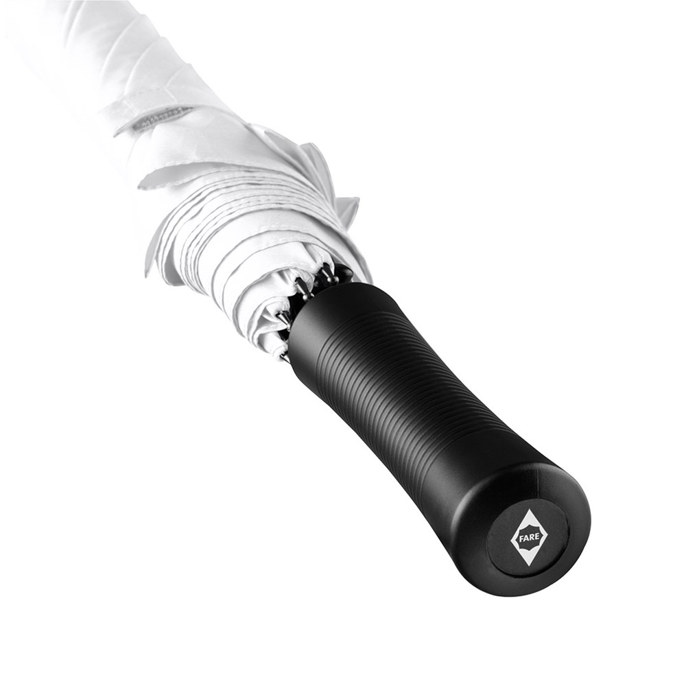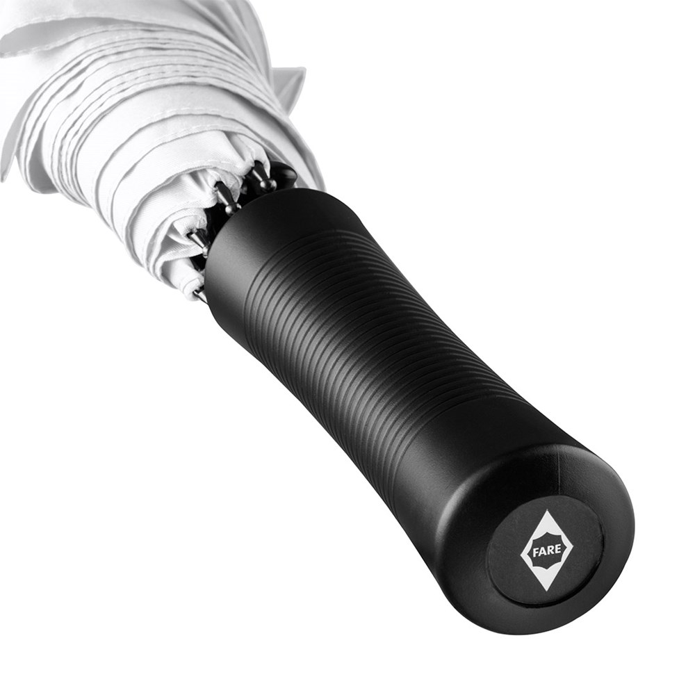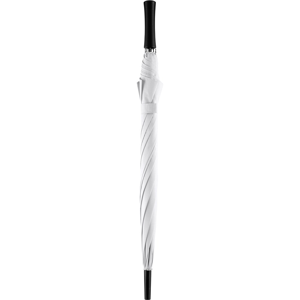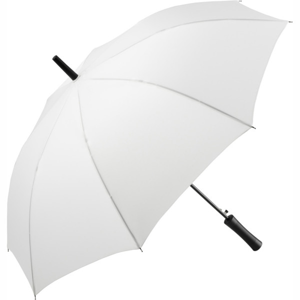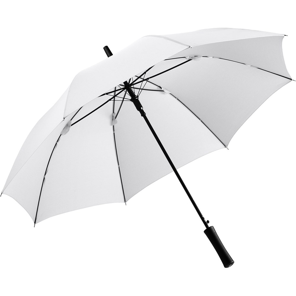 Preislich attraktiver Automatik-Stockschirm mit Windproof-System Komfortable Automatik-Funktion zum schnellen Öffnen, Windproof-System für höhere Gestell-Flexibilität und bessere Windsicherheit, flexible Fiberglasschienen, matt-schwarzer gerader Kunststoffgriff mit Werbeanbringungsmöglichkeit, höherer Korrosionsschutz durch schwarze Galvanisierung des Stahlstocks