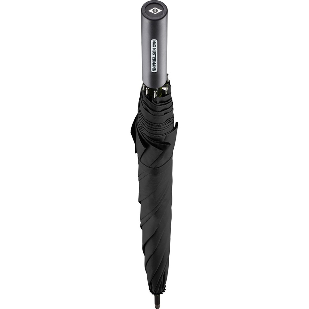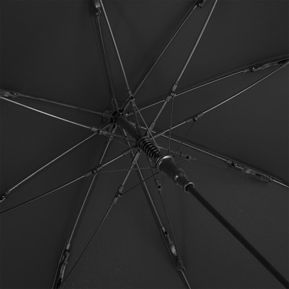 Preislich attraktiver Automatik-Stockschirm mit doppelter Werbeanbringungsmöglichkeit am Griff Komfortable Automatik-Funktion zum schnellen Öffnen, hochwertiges Windproof-PLUS-System für eine maximale Gestell-Flexibilität bei stärkeren Windböen, flexible Fiberglasschienen, gerader Griff mit doppelter Werbeanbringungsmöglichkeit, höherer Korrosionsschutz durch schwarze Galvanisierung des Stahlstocks