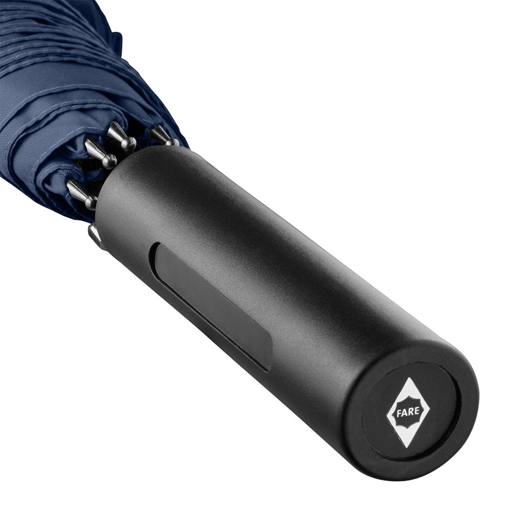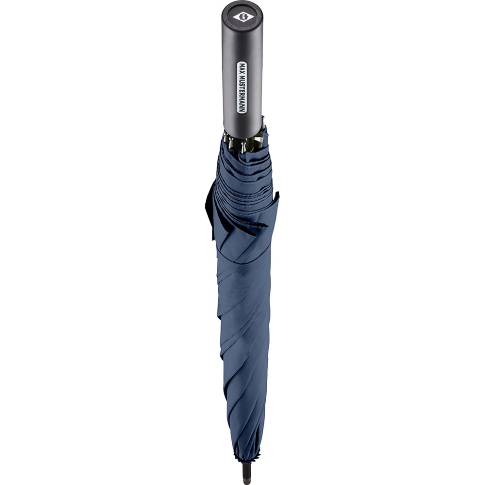 Preislich attraktiver Automatik-Stockschirm mit doppelter Werbeanbringungsmöglichkeit am Griff Komfortable Automatik-Funktion zum schnellen Öffnen, hochwertiges Windproof-PLUS-System für eine maximale Gestell-Flexibilität bei stärkeren Windböen, flexible Fiberglasschienen, gerader Griff mit doppelter Werbeanbringungsmöglichkeit, höherer Korrosionsschutz durch schwarze Galvanisierung des Stahlstocks