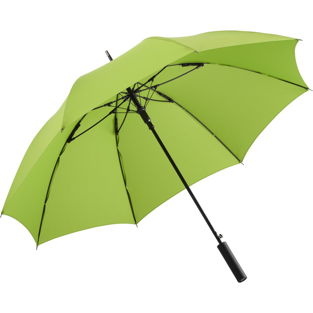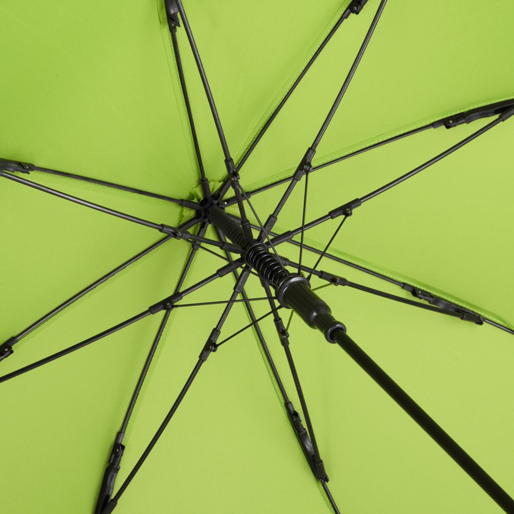 Preislich attraktiver Automatik-Stockschirm mit doppelter Werbeanbringungsmöglichkeit am Griff Komfortable Automatik-Funktion zum schnellen Öffnen, hochwertiges Windproof-PLUS-System für eine maximale Gestell-Flexibilität bei stärkeren Windböen, flexible Fiberglasschienen, gerader Griff mit doppelter Werbeanbringungsmöglichkeit, höherer Korrosionsschutz durch schwarze Galvanisierung des Stahlstocks
