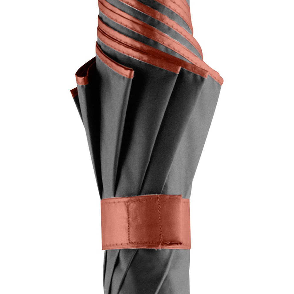 Attraktiver Stockschirm mit zweifarbigem Bezug Komfortable Automatik-Funktion zum schnellen Öffnen, Windproof-System für höhere Gestell-Flexibilität und bessere Windsicherheit, flexible Fiberglasschienen, harmonisch kombinierter zweifarbiger Bezug mit aufeinander abgestimmten Innen- und Außenfarben, Saum, Rosette und Schließband farblich auf Bezug-Innenfarbe angepasst, von innen beschichteter Bezug, gerader Soft-Touch-Griff mit doppelter Werbeanbringungsmöglichkeit, höherer Korrosionsschutz durch schwarze Galvanisierung des Stahlstocks. Auch als Taschenschirm (Art. 5529) erhältlich.