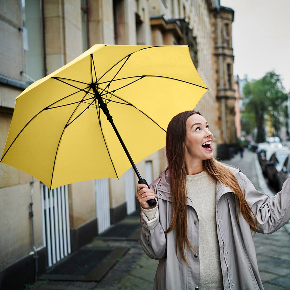 Preislich attraktiver Automatik-Stockschirm mit Windproof-PLUS-System Komfortable Automatik-Funktion zum schnellen Öffnen, hochwertiges Windproof-PLUS-System für eine maximale Gestell-Flexibilität bei stärkeren Windböen, flexible Fiberglasschienen, höherer Korrosionsschutz durch schwarze Galvanisierung des Stahlstocks, handsympathischer Soft-Feel-Griff mit integrierter Auslösetaste und Werbeanbringungsmöglichkeit.