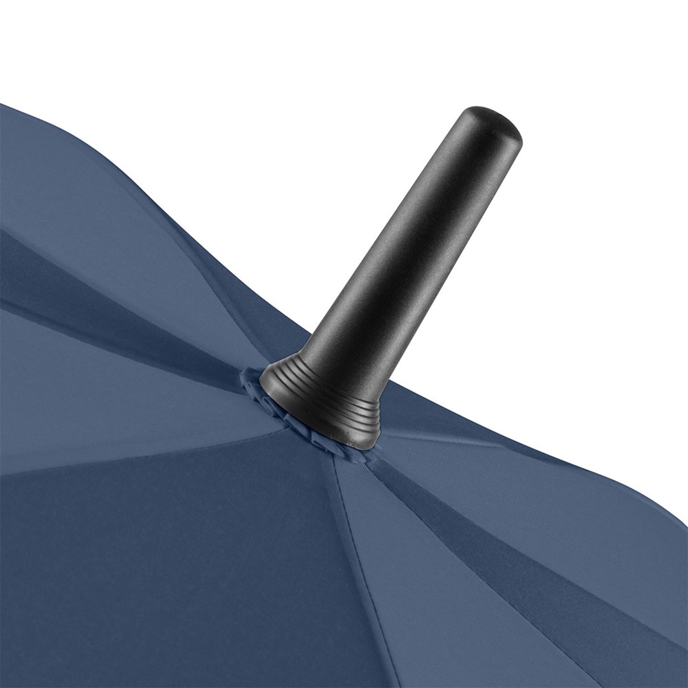 Stabiler Handöffner-Gästeschirm für zwei Personen Hochwertiges Windproof-PLUS-System für eine maximale Gestell-Flexibilität bei stärkeren Windböen, flexible Fiberglasschienen, stabiler Fiberglasstock, gerader Griff mit Werbeanbringungsmöglichkeit, Kunststoff-Glocke, gastfreundlicher großer Durchmesser