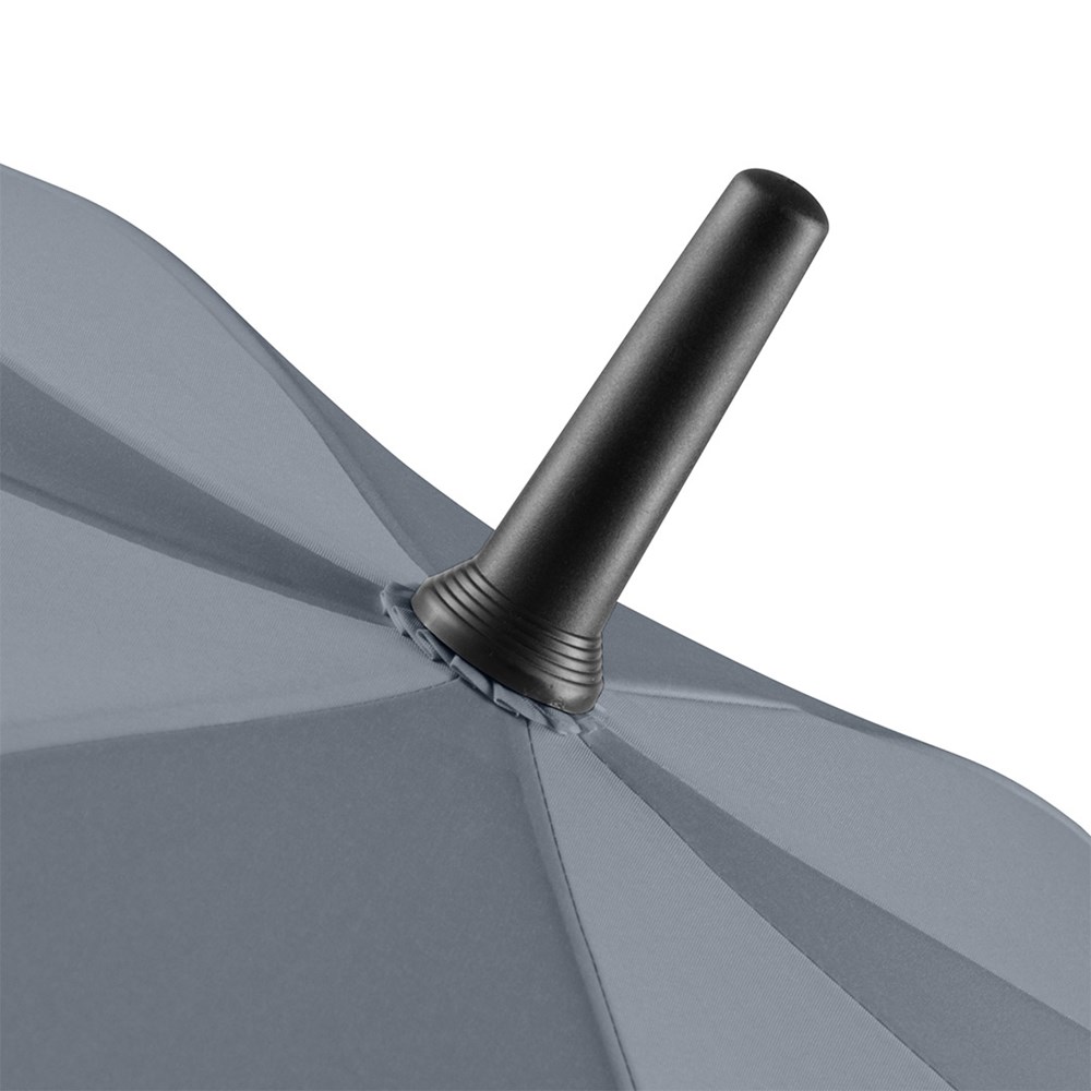 Stabiler Handöffner-Gästeschirm für zwei Personen Hochwertiges Windproof-PLUS-System für eine maximale Gestell-Flexibilität bei stärkeren Windböen, flexible Fiberglasschienen, stabiler Fiberglasstock, gerader Griff mit Werbeanbringungsmöglichkeit, Kunststoff-Glocke, gastfreundlicher großer Durchmesser
