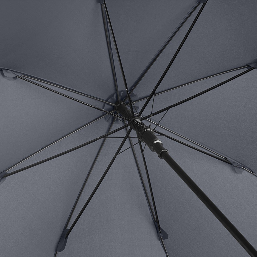Preislich attraktiver Gästeschirm für zwei Personen mit Windproof-System Komfortable Automatik-Funktion zum schnellen Öffnen, Windproof-System für höhere Gestell-Flexibilität und bessere Windsicherheit, flexible Fiberglasschienen, matt-schwarzer Kunststoff Rundhakengriff, höherer Korrosionsschutz durch schwarze Galvanisierung des Stahlstocks. Auch als Stockschirm (Art. 1104) erhältlich.