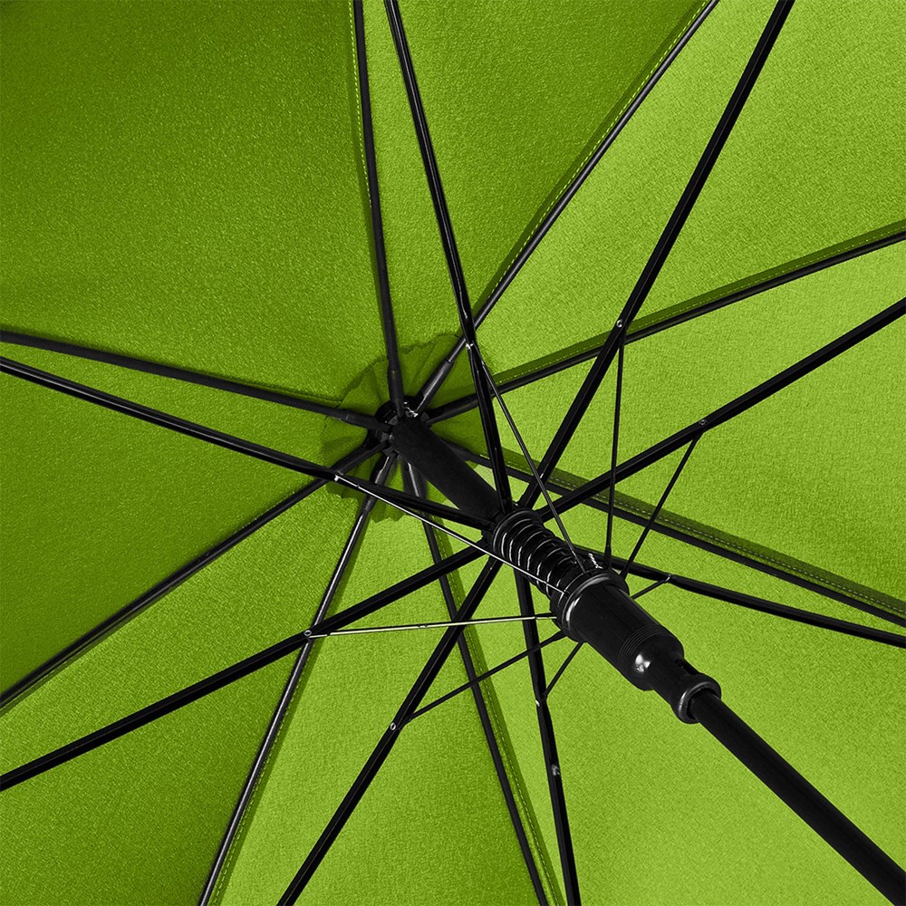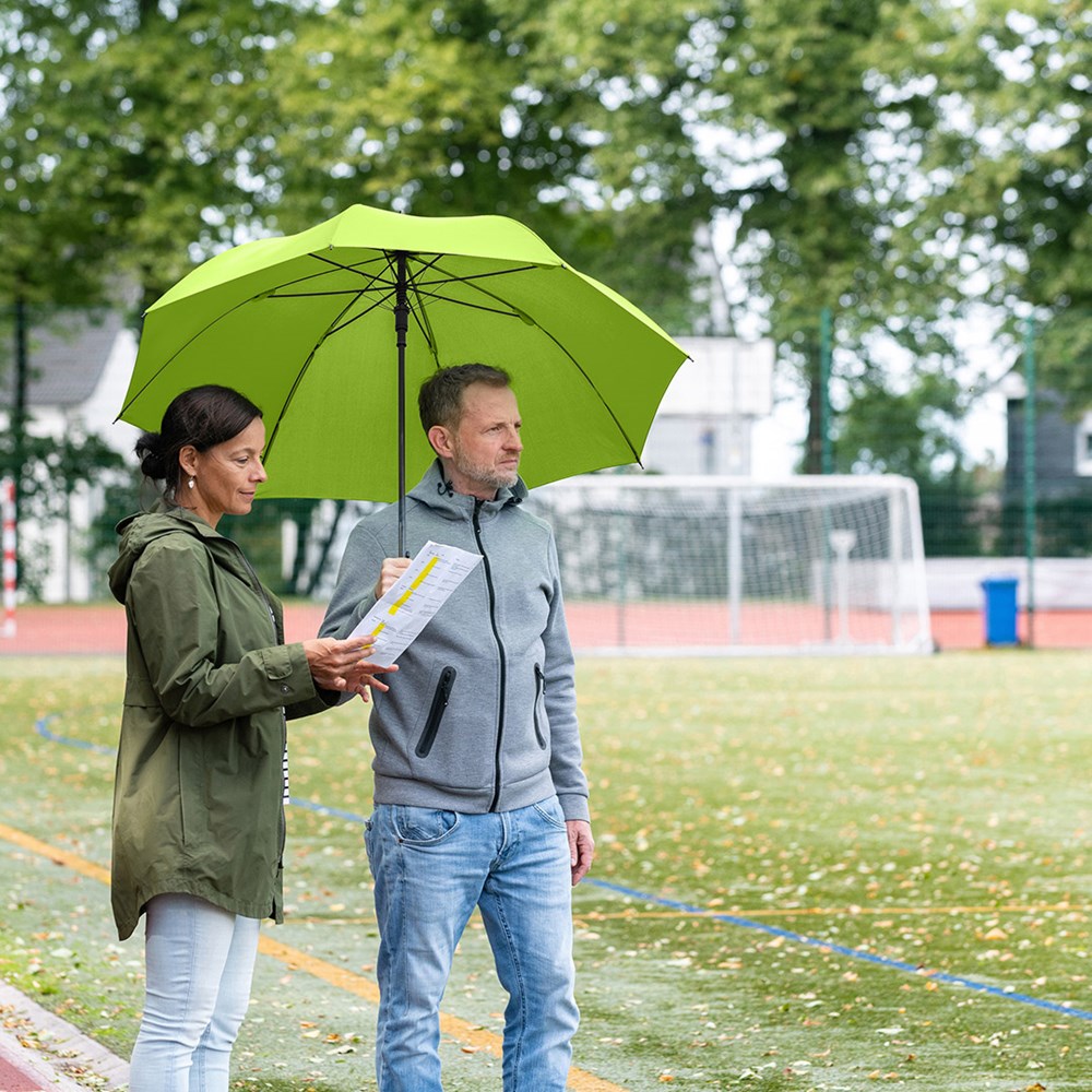 Komfortabler Automatik-Gästeschirm für zwei Personen mit handsympathischem Softgriff Komfortable Automatik-Funktion zum schnellen Öffnen, höhere Gestell-Flexibilität und bessere Windsicherheit durch Windproof-System, flexible Fiberglasschienen, gerader Softgriff, höherer Korrosionsschutz durch schwarze Galvanisierung des Stahlstocks, gastfreundlicher großer Durchmesser