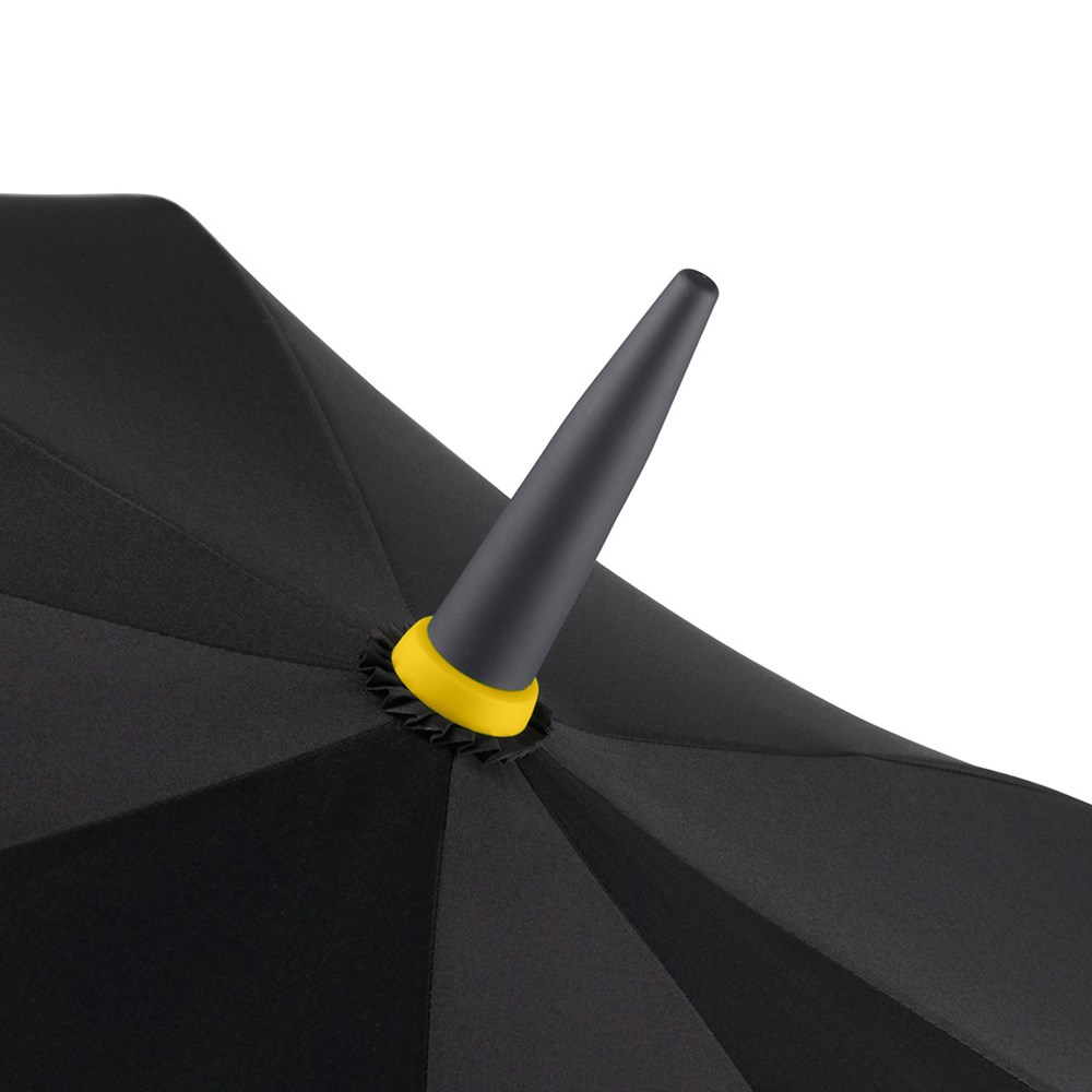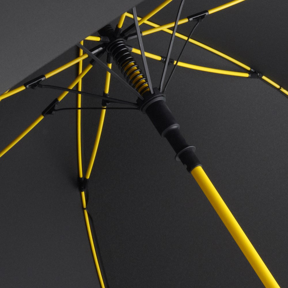 Stylischer Automatik-Gästeschirm für zwei Personen mit farbigem Stock und farbigen Elementen Komfortable Automatik-Funktion zum schnellen Öffnen, hochwertiges Windproof-PLUS-System für eine maximale Gestell-Flexibilität bei stärkeren Windböen, flexible Fiberglasschienen, stabiler Stahlstock mit farbiger Kunststoffummantelung, Polyester-Pongee Bezugsmaterial aus recycelten Kunststoffen, umweltfreundlich dank original waterSAVE Bezugsmaterial, mit waterSAVE®-Label auf dem Schließband, exklusiver gerader Soft-Feel-Griff mit farbigen Griffringen und doppelter Werbeanbringungsmöglichkeit. Auch als Taschenschirm (Art. 5084, 5484, 5584) und Midsize-Schirm (Art. 4784) erhältlich.