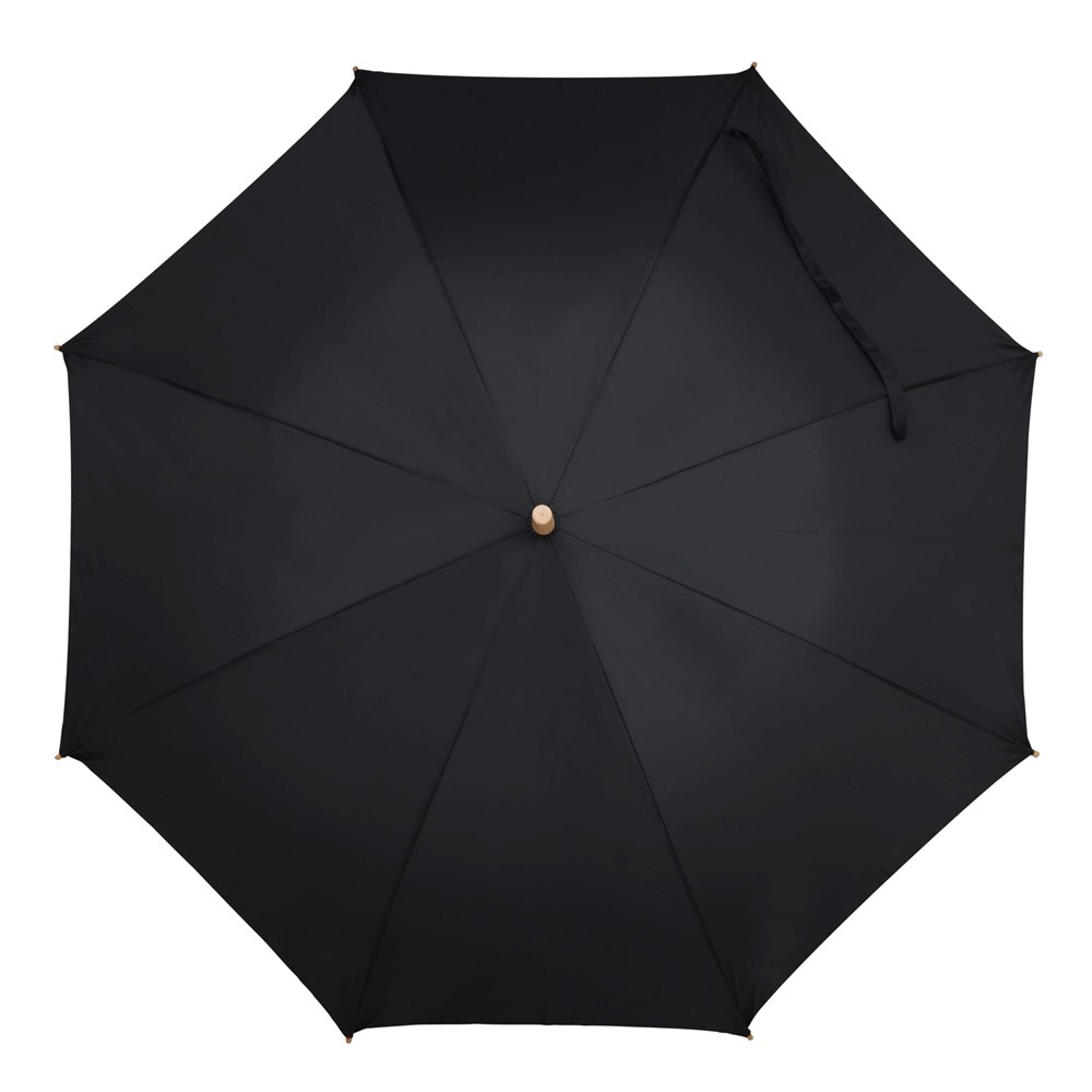 Stockschirm aus R-PET-Material mit einem eleganten Holzgriff. Durch den stabilen Fiberglasrahmen... mehr