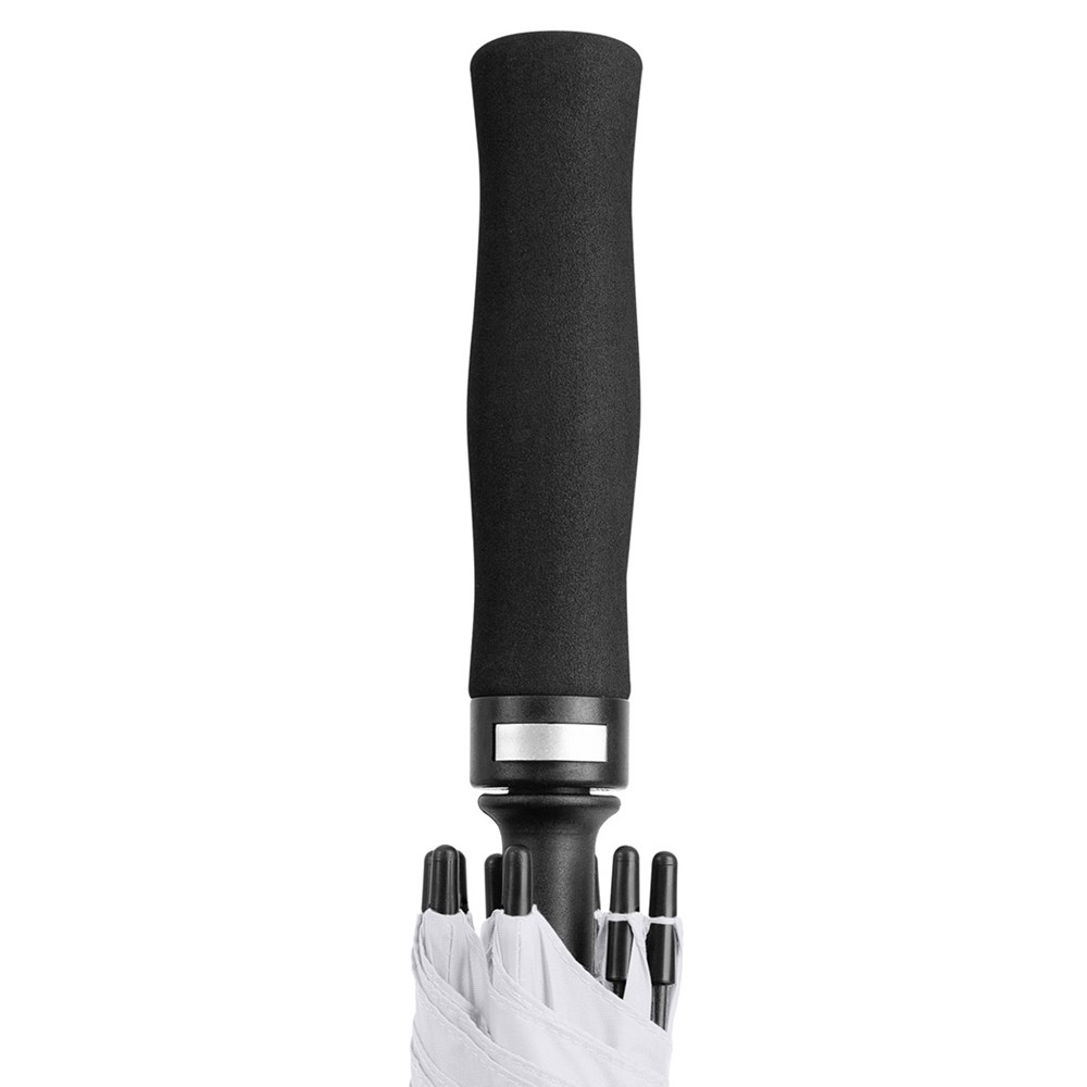 Äußerst stabiler Automatik-Gästeschirm für zwei Personen mit riesigem Durchmesser Komfortable Automatik-Funktion zum schnellen Öffnen, hochwertiges Windproof-PLUS-System für eine maximale Gestell-Flexibilität bei stärkeren Windböen, stabiler Fiberglasstock, flexible Fiberglasschienen, gerader Softgriff mit schmaler Auslösetaste, gastfreundlicher Durchmesser