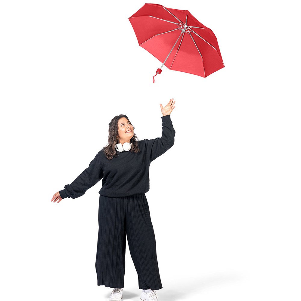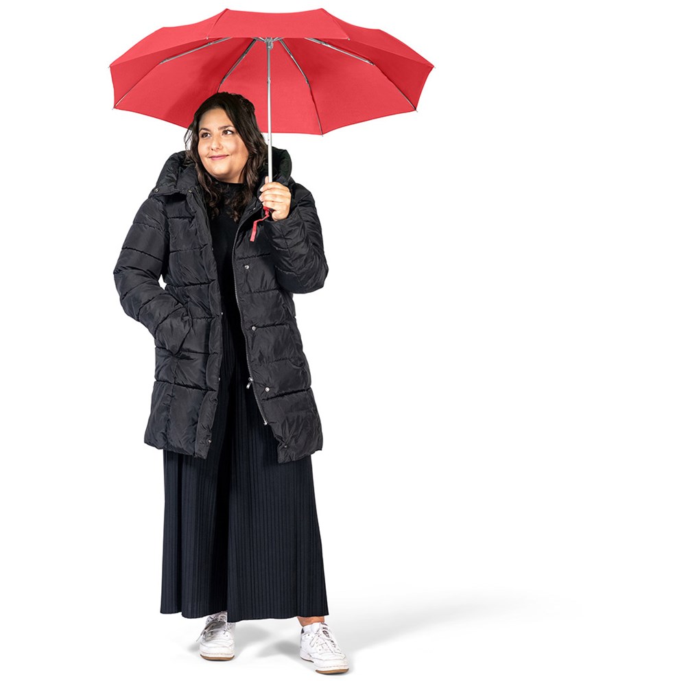 Ultraleichter Handöffner-Taschenschirm mit Aluminiumgestell Einfache Handhabung durch Sicherheitsschieber, Windproof-System für höhere Gestell-Flexibilität und bessere Windsicherheit, Soft-Touch-Griff mit Werbeanbringungsmöglichkeit, handtaschentauglich durch ultraleichtes Gewicht