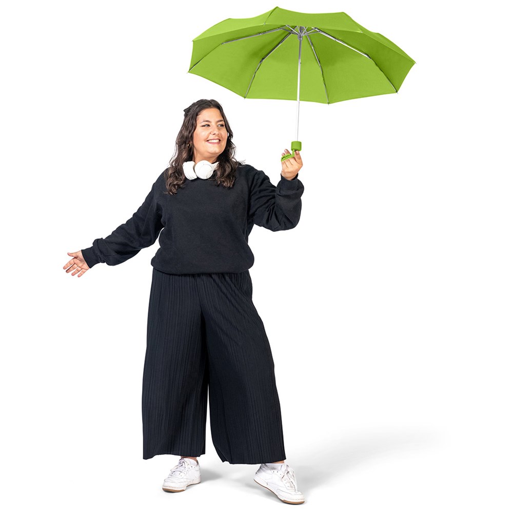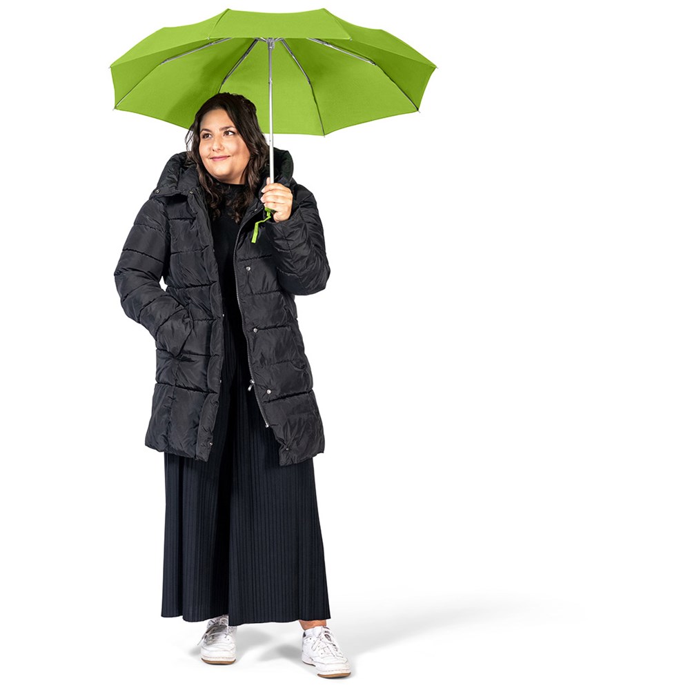 Ultraleichter Handöffner-Taschenschirm mit Aluminiumgestell Einfache Handhabung durch Sicherheitsschieber, Windproof-System für höhere Gestell-Flexibilität und bessere Windsicherheit, Soft-Touch-Griff mit Werbeanbringungsmöglichkeit, handtaschentauglich durch ultraleichtes Gewicht