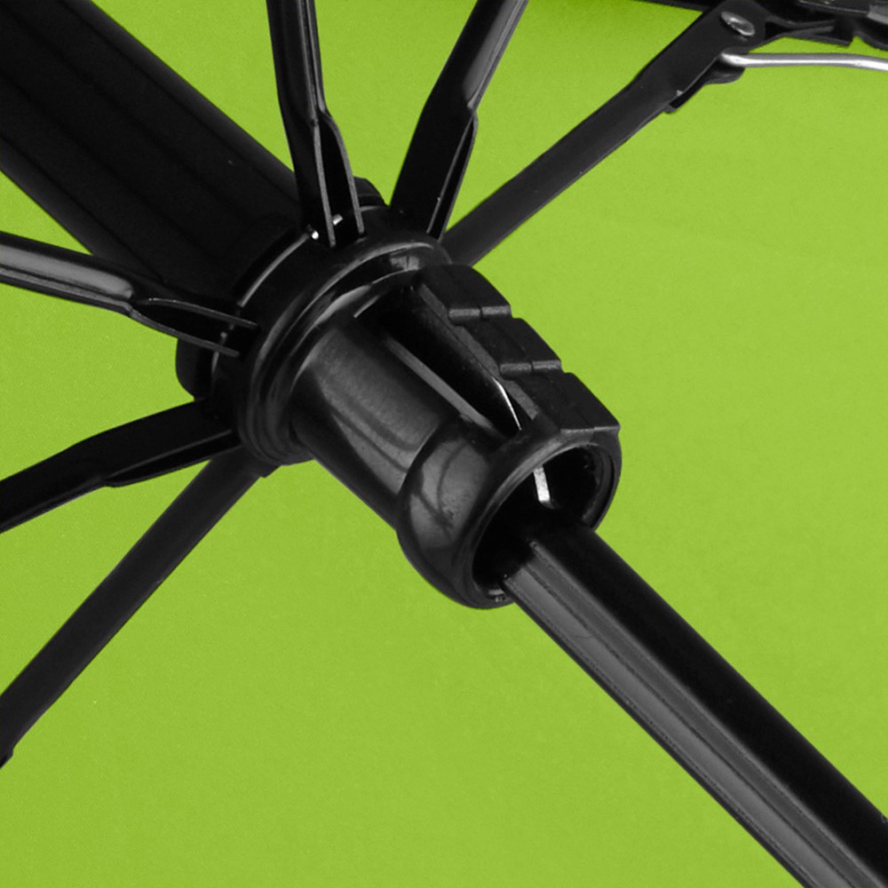 Filigraner Handöffner-Taschenschirm in ultraleichter Ausführung Einfache Handhabung durch Sicherheitsschieber, hochwertiges Windproof-PLUS-System für eine maximale Gestell-Flexibilität bei stärkeren Windböen, schwarzer Aluminiumstock, Polyester-Pongee Bezugsmaterial aus recycelten Kunststoffen, extra leichter Bezug, matt-schwarzer Kunststoffgriff aus recyceltem ABS (rABS) mit Werbeanbringungsmöglichkeit, handtaschentauglich durch ultraleichtes Gewicht und kompakte Größe