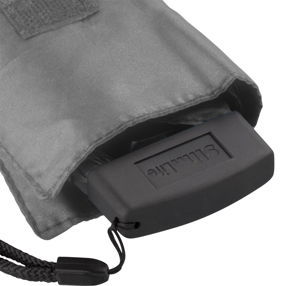 Ultraleichter Handöffner-Taschenschirm im praktischen Tragefutteral mit Karabinerhaken Hochwertiges Windproof-PLUS-System für eine maximale Gestell-Flexibilität bei stärkeren Windböen, verchromter Stahlstock, extra leichter Bezug, flacher Soft-Touch-Griff mit Werbeanbringungsmöglichkeit, Tragefutteral mit praktischem Karabinerhaken zur Befestigung an Rucksack oder Tasche, handtaschentauglich durch extrem leichtes Gewicht, platzsparend durch superflache Ausführung