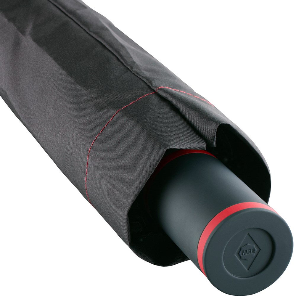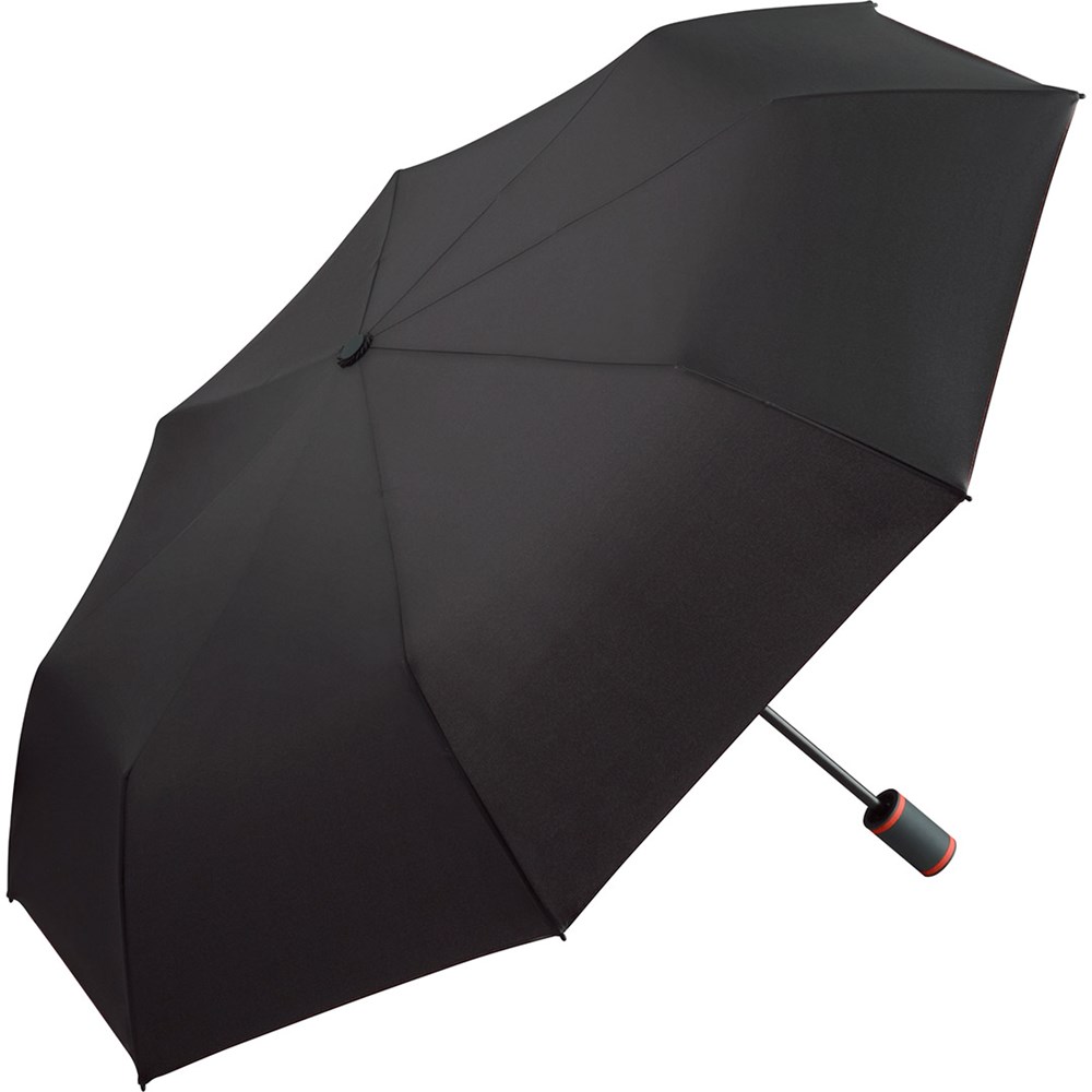 Stylischer Handöffner-Taschenschirm in Schwarz mit farbigen Elementen Einfache Handhabung durch Sicherheitsschieber, hochwertiges Windproof-PLUS-System für eine maximale Gestell-Flexibilität bei stärkeren Windböen, flexible Fiberglasschienen, Polyester-Pongee Bezugsmaterial aus recycelten Kunststoffen, umweltfreundlich dank original waterSAVE Bezugsmaterial, mit waterSAVE®-Label auf dem Schließband, ansprechendes Design durch farbige Schienen, Griffringe und Nähte, Soft-Feel-Griff mit Werbeanbringungsmöglichkeit, Futteral mit farbiger Naht. Auch als Taschenschirm (Art. 5484, 5584), Midsize-Schirm (Art. 4784) und Gästeschirm (Art. 2384) erhältlich.