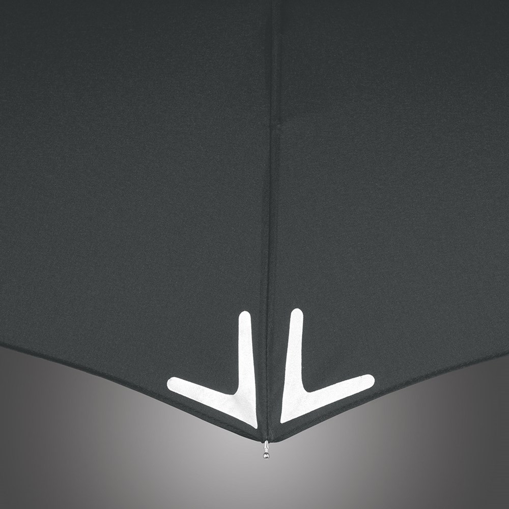 Raffinierter Handöffner-Taschenschirm mit modischen Reflektoren und LED-Leuchte Einfache Handhabung durch Sicherheitsschieber, hochwertiges Windproof-PLUS-System für eine maximale Gestell-Flexibilität bei stärkeren Windböen, Bezug mit 3M™ Scotchlite™ Reflective Material an den Segmentecken als modisches Detail, Soft-Feel-Griff mit schwenkbarer LED-Lampe, Leuchtkopf (inkl. Knopfzellen) verstellbar auf weißes Dauerlicht oder rotes Blinklicht, komfortables Futteral mit Druckknopf. WEEE-Reg.-Nr. DE 14360689, Batt-Reg.-Nr. DE 52803080, Batterien (2 x CR2025) im Lieferumfang enthalten. Weitere Safebrella®-Schirme: 5071, 5471, 5571 und 7571.