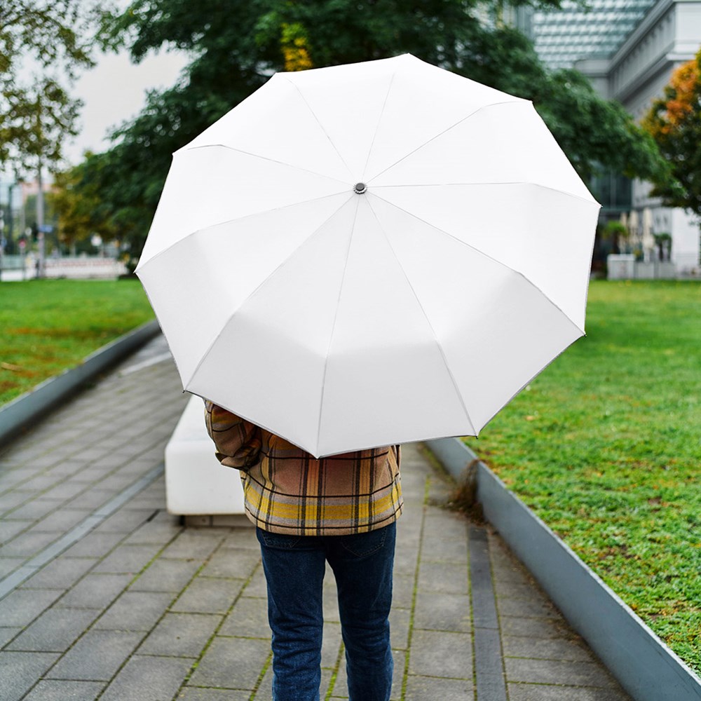 Schicker Handöffner-Taschenschirm in Übergröße mit modisch reflektierender Paspelierung Einfache Handhabung durch Sicherheitsschieber, hochwertiges Windproof-PLUS-System für eine maximale Gestell-Flexibilität bei stärkeren Windböen, besondere Schirmform durch 10 Segmente, Bezug mit modischer Reflexpaspel in Silber, handsympathischer Soft-Feel-Griff mit elastischer Tragekordel und Werbeanbringungsmöglichkeit, gastfreundlicher Durchmesser, Futteral mit modischer Reflexpaspel