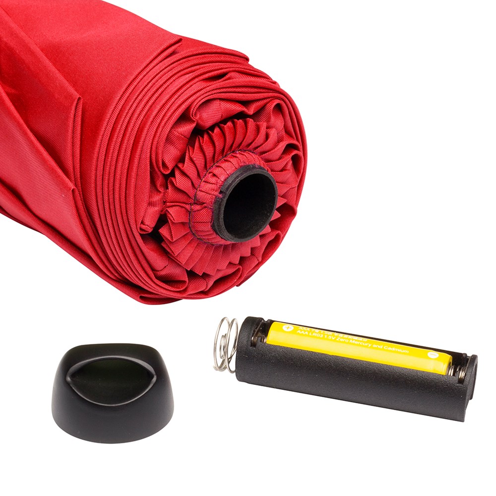 Material: Bezug: 100% Polyester-Pongee Griff: Kunststoff Stock: Stahl Batterietyp: Zink-Mangandioxid (Zn/MnO2)