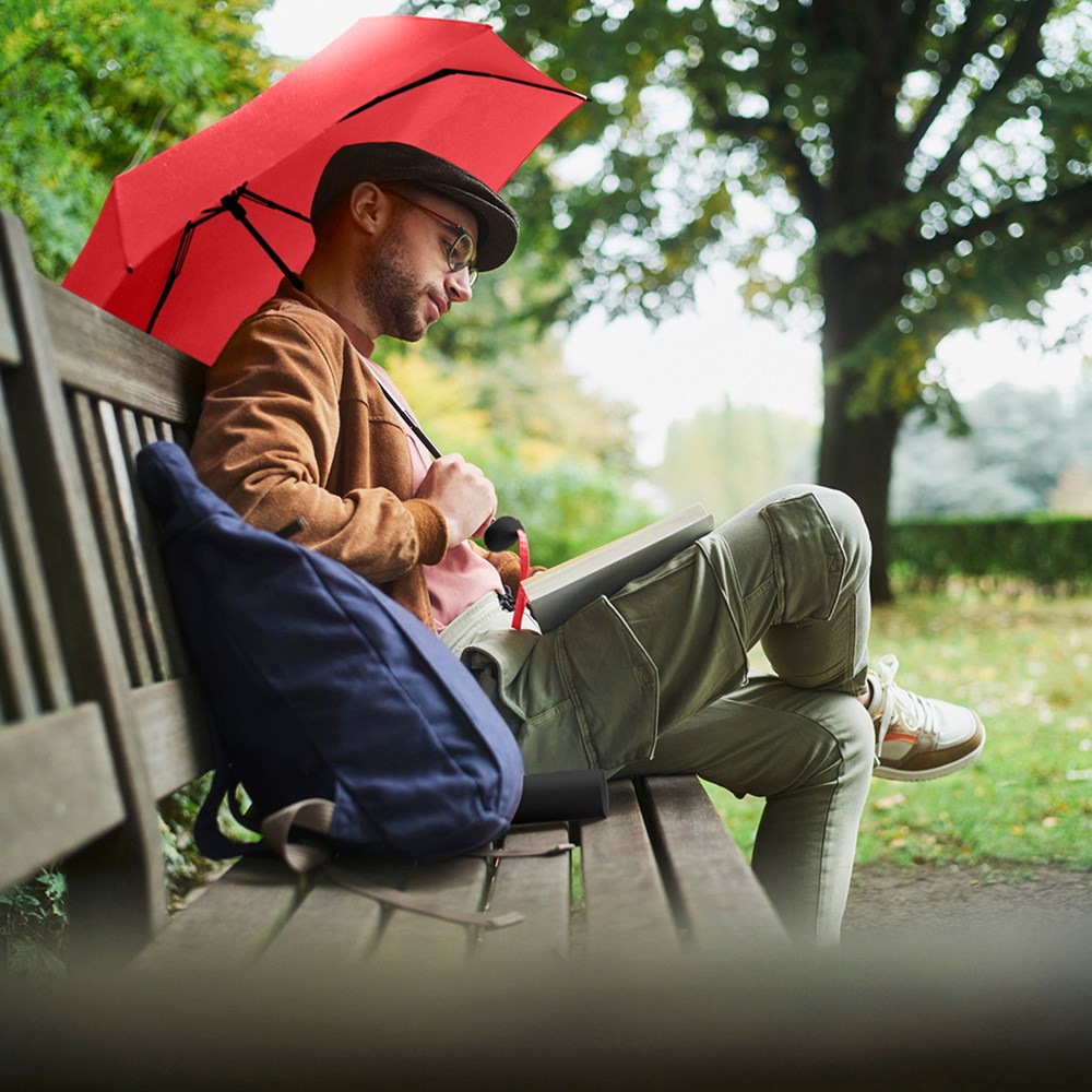 Praktischer Handöffner-Taschenschirm mit Windproof-PLUS-System in Tube Einfache Handhabung durch Sicherheitsschieber, hochwertiges Windproof-PLUS-System für eine maximale Gestell-Flexibilität bei stärkeren Windböen, Kunststoffgriff mit Tragekordel aus Bezugsmaterial farblich auf den Bezug abgestimmt, spezieller Griff mit Silikonring sorgt für dichtes Schließen der Verpackung, Tube aus Kunststoff mit Gummilippe zum Ablassen des Wassers und für sicheren Transport des nassen Schirms