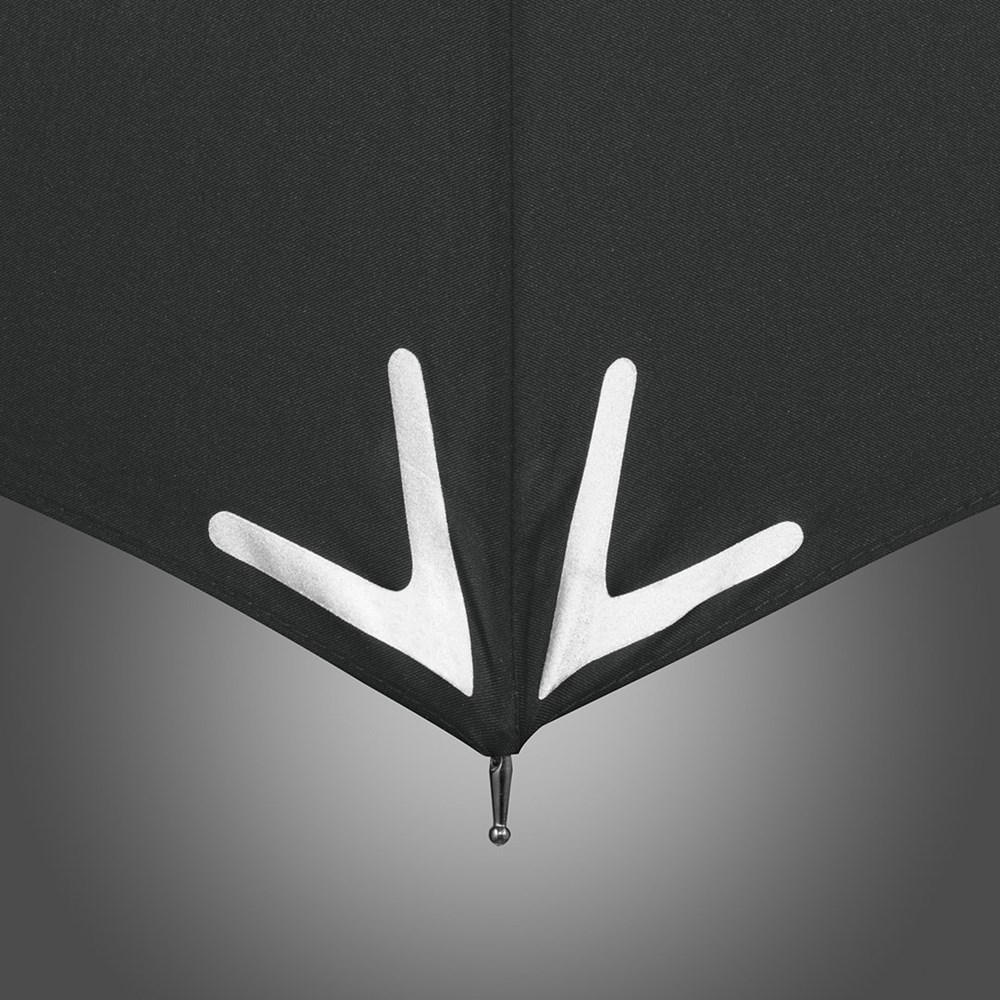 Cleverer Automatik-Stockschirm mit modischen Reflektoren und LED-Leuchte Komfortable Automatik-Funktion zum schnellen Öffnen, Windproof-System für höhere Gestell-Flexibilität und bessere Windsicherheit, flexible Fiberglasschienen, Bezug mit 3M™ Scotchlite™ Reflective Material an den Segmentecken als modisches Detail, Soft-Feel-Griff mit Werbeanbringungsmöglichkeit und schwenkbarer LED-Lampe, Leuchtkopf (inkl. Knopfzellen) verstellbar auf weißes Dauerlicht oder rotes Blinklicht, höherer Korrosionsschutz durch schwarze Galvanisierung des Stahlstocks. WEEE-Reg.-Nr. DE 14360689, Batt-Reg.-Nr. DE 52803080, Batterien (2 x CR2025) im Lieferumfang enthalten. Weitere Safebrella®-Modelle: 5071, 5171, 5471 und 5571.