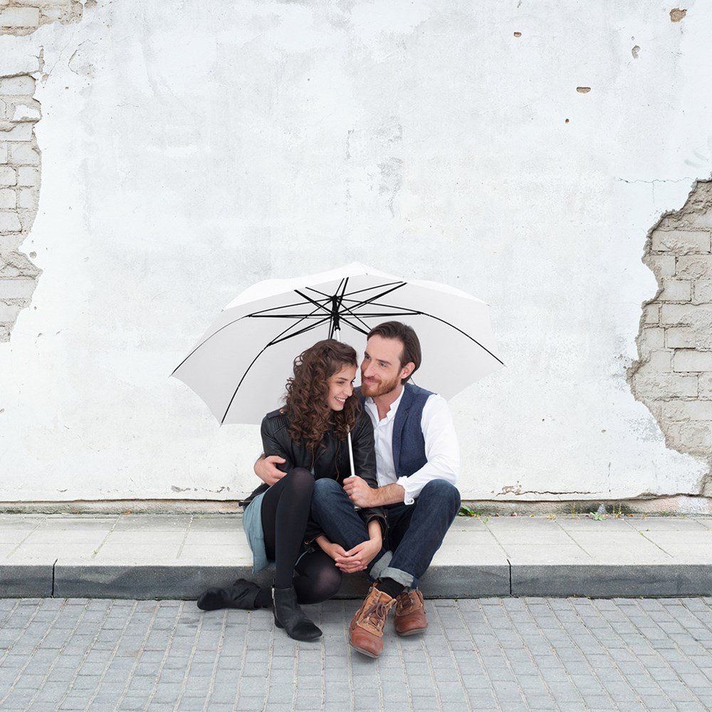 Stylischer Automatik-Gästeschirm für zwei Personen mit farblich auf den Bezug abgestimmtem Griff Komfortable Automatik-Funktion zum schnellen Öffnen, hochwertiges Windproof-PLUS-System für eine maximale Gestell-Flexibilität bei stärkeren Windböen, flexible Fiberglasschienen, leichter aber stabiler Aluminiumstock, formschöner Soft-Touch-Griff mit silberner Auslösetaste und Werbeanbringungsmöglichkeit, gastfreundlicher großer Durchmesser. Auch als Taschenschirm (Art. 5565, 5640) und als Stockschirm (Art. 7560) erhältlich.