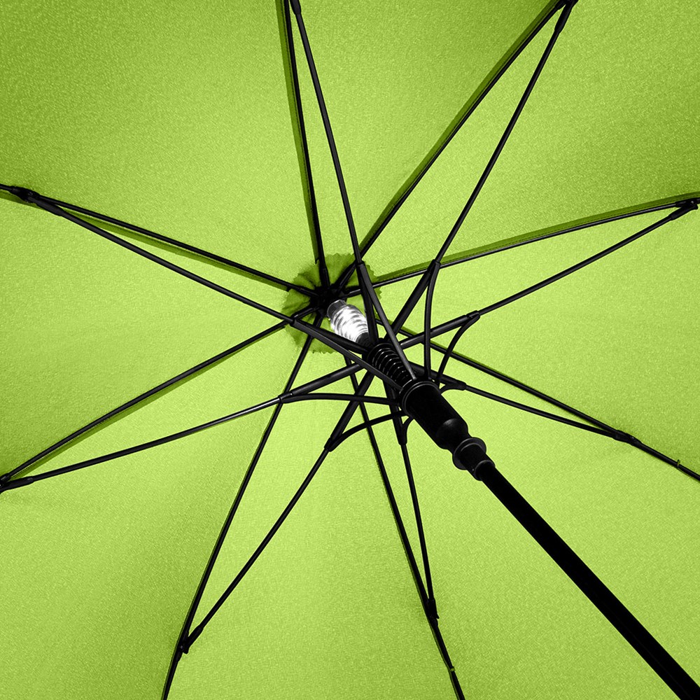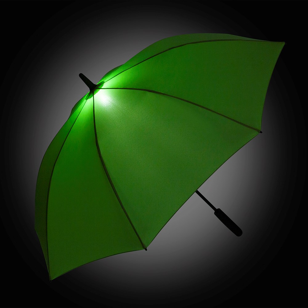 Effektvoller Automatik-Stockschirm in mittlerer Größe mit LED-Innenbeleuchtung Komfortable Automatik-Funktion zum schnellen Öffnen, hochwertiges Windproof-PLUS-System für eine maximale Gestell-Flexibilität bei stärkeren Windböen, flexible Fiberglasschienen, Soft-Feel-Griff mit integrierter Auslösetaste, Taste zum Ausschalten des Lichts und Werbeanbringungsmöglichkeit, höherer Korrosionsschutz durch schwarze Galvanisierung des Stahlstocks, WEEE-Reg.-Nr. DE 14360689, Batt-Reg.-Nr. DE 52803080, Batterien (3 x AAA) im Lieferumfang enthalten.