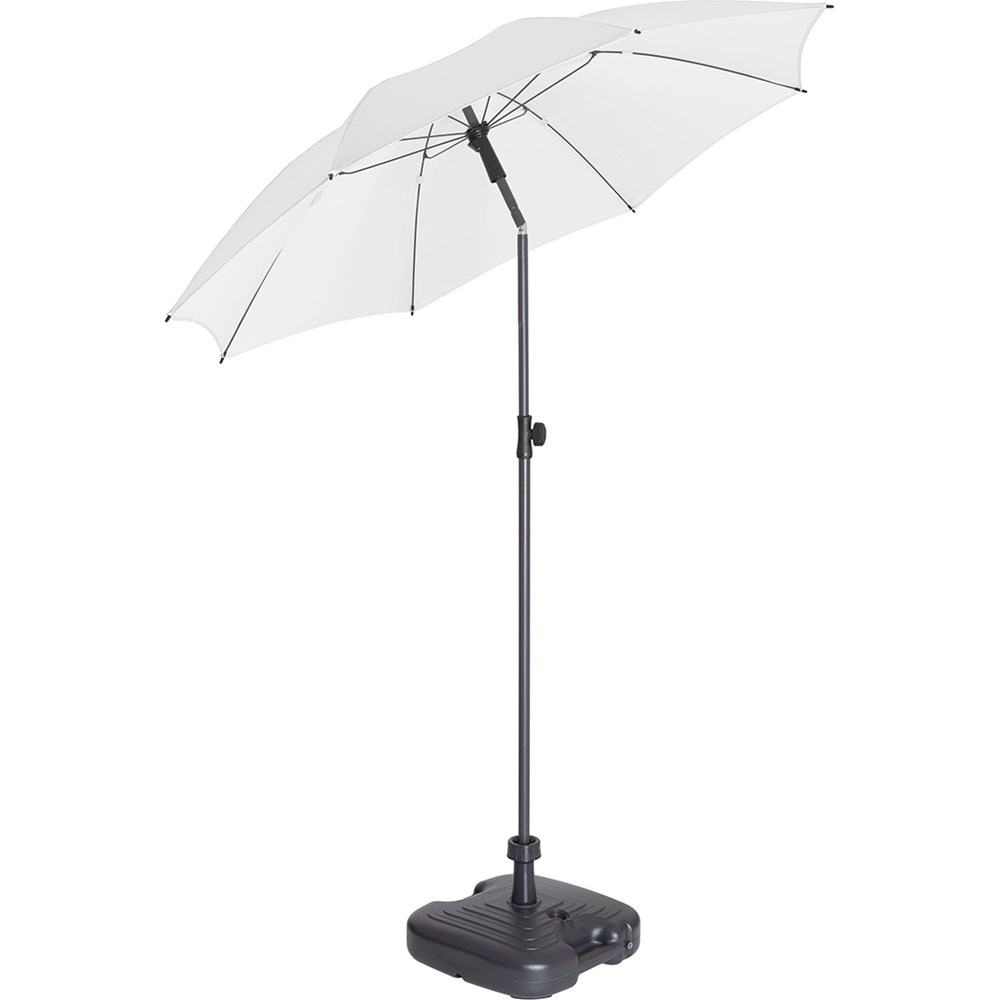 Moderner Sonnenschirm mit Gestell in Titan-Finish und Knickvorrichtung Einfache Handhabung durch Sicherheitsschieber, sehr stabile Fiberglasschienen, zweiteiliger und stufenlos höhenverstellbarer Stock mit Knickvorrichtung zur Neigung des Schirms, Stock in edlem Titan-Finish, Unterstock mit ca. 119 cm Länge und Drehfeststeller zur sicheren Fixierung, komfortables Tragefutteral, hochqualitativer Bezug mit einer Grammatur von ca. 200 g/m² und Lichtschutzfaktor UPF 50+, exklusive Füllständer (Art. 8920 oder Art. 8905) / Erdspieß (Art. 8939)