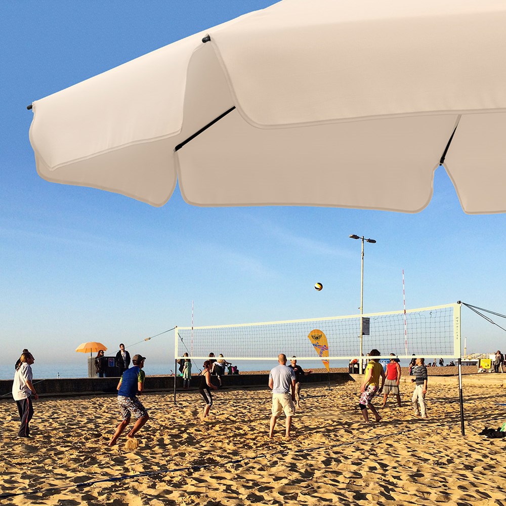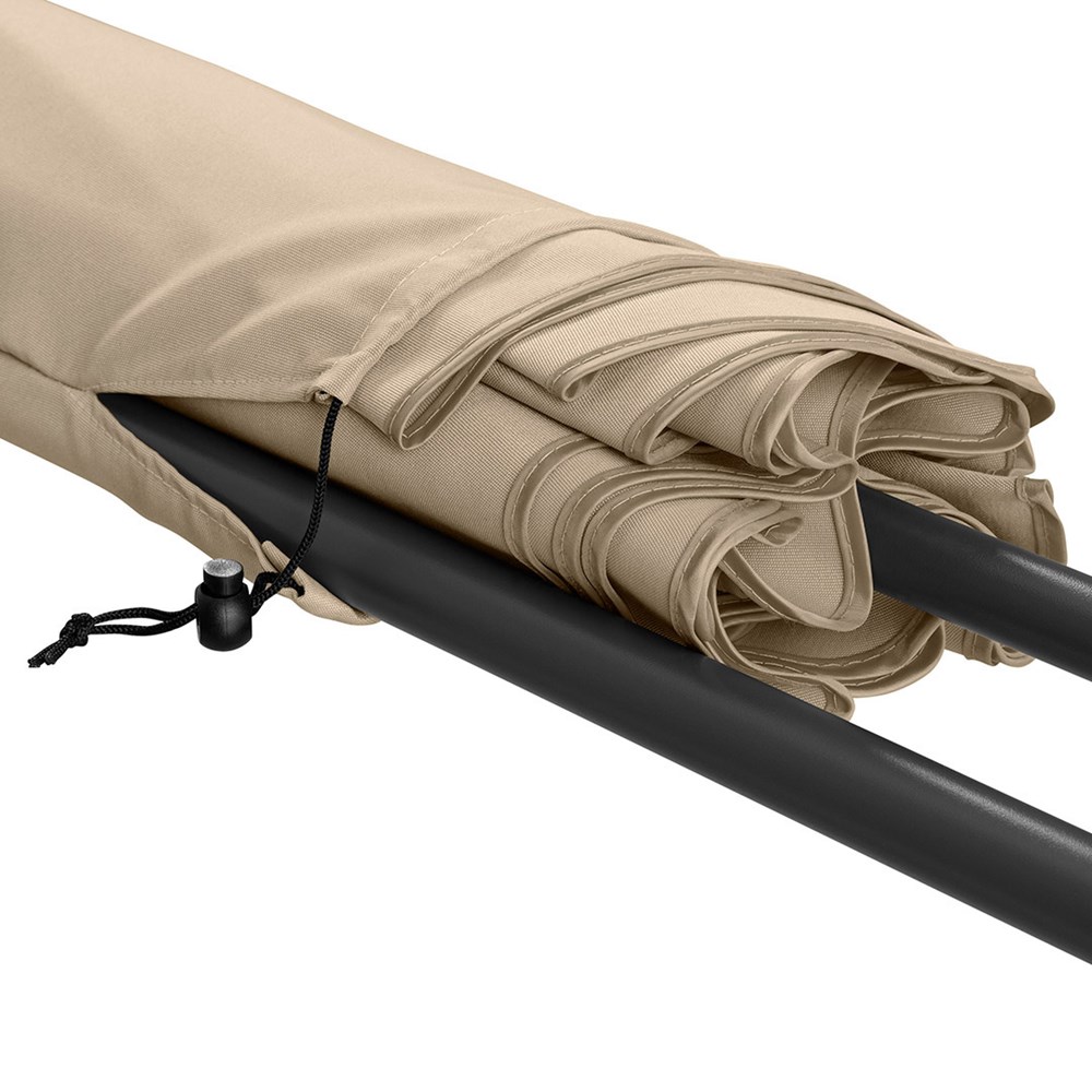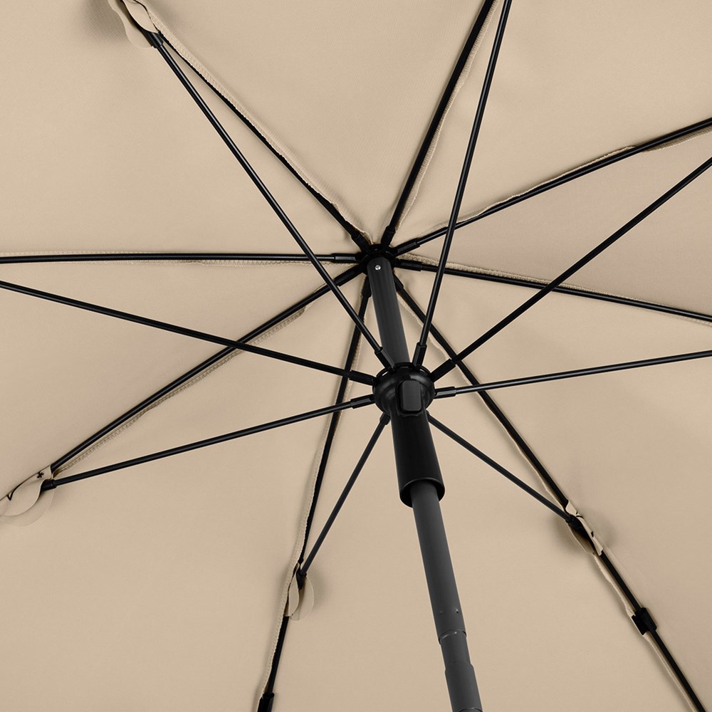 Moderner Sonnenschirm mit Gestell in Titan-Finish, Knickvorrichtung und mit Volant Einfache Handhabung durch Sicherheitsschieber, sehr stabile Fiberglasschienen, zweiteiliger und stufenlos höhenverstellbarer Stock mit Knickvorrichtung zur Neigung des Schirms, Stock in edlem Titan-Finish, Unterstock mit ca. 120 cm Länge und Drehfeststeller zur sicheren Fixierung, komfortables Tragefutteral, Bezug mit Lichtschutzfaktor UPF 50+, angeschnittenes Volant, exklusive Füllständer (Art. 8920 oder Art. 8905) / Erdspieß (Art. 8939)