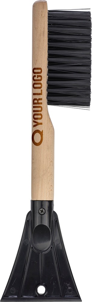 ABS-Eiskratzer mit einer PET-Bürste und einem Griff aus Buchenholz. Einzeln verpackt in einem recycelten Polybeutel.