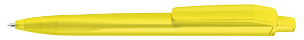 Druckkugelscheiber mit transparent gefrostetem Gehäuse, Clip und Drücker aus recyceltem ABS Kunststoff. Griffzone ergonomisch geformt.