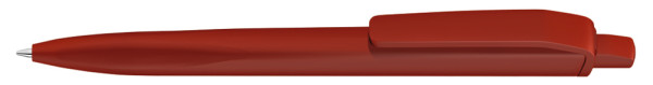 Druckkugelscheiber mit gedeckt mattem Gehäuse, Clip und Drücker aus recyceltem ABS-Kunststoff. Griffzone ergonomisch geformt.