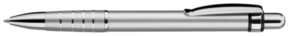 Metall-Druckkugelschreiber mit lackiertem Aluminiumschaft, Metallclip und Griffzone mit Ringdesign glanzverchromt.