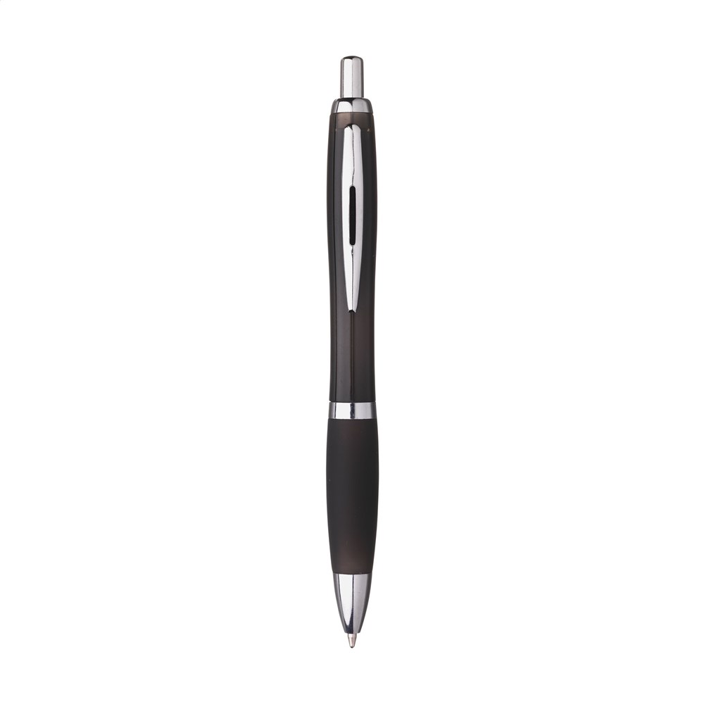 Blauschreibender Kugelschreiber. Das solide Gehäuse besteht aus recyceltem ABS. Mit Druckknopf, Metallclip und silberfarbenen Akzenten. RCS-zertifiziert. Recyceltes Material insgesamt: 78%.
