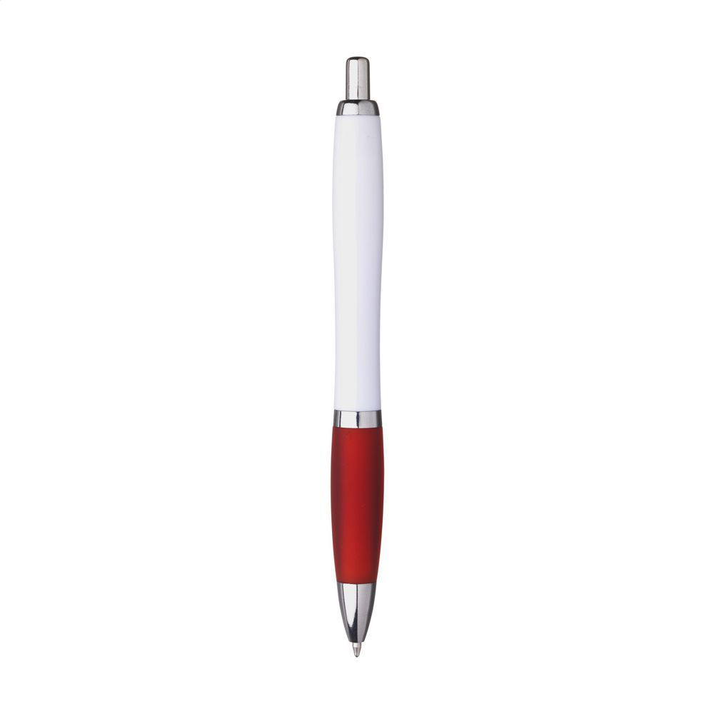 Blauschreibender Kugelschreiber. Das transparent farbiges Gehäuse besteht aus recyceltem ABS. Mit Druckknopf, Metallclip und silberfarbenen Akzenten. RCS-zertifiziert. Recyceltes Material insgesamt: 78%.