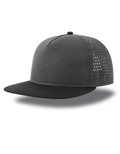 Verstärkte Streetwear-Mütze aus recyceltem Polyester-Mikrofaser und recyceltem Polyester-Twill am Schirm | Fünf-Segmente-Design und flacher Schirm | Feine Laser-Perforierung an der Seite und Rückseite