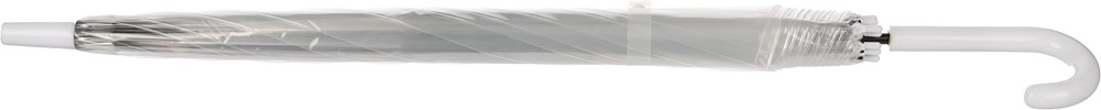 Automatik-Stockschirm mit POE-Bespannung, Krücke und Tips aus Kunststoff, Schaft und Spitze aus Aluminium, Gestell aus Metall.
