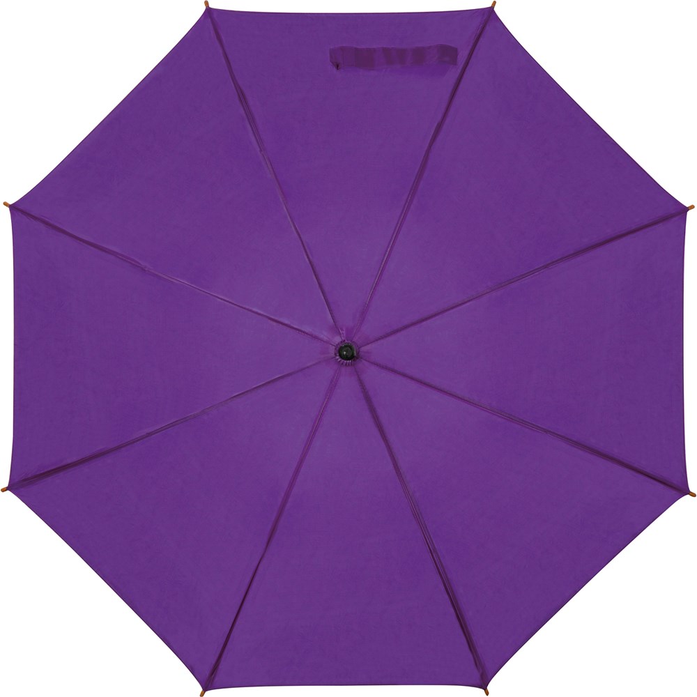 Unser Automatikschirm aus 190T Polyester mit einem gebogenen Holzgriff und Holzspitzen ist nicht... mehr