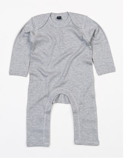 Bio-Baumwolle, gekämmt | Interlock | Langärmeliger Ganzkörper-Strampelanzug | Envelope-Ausschnitt | Ärmelabschluss aus identischem Material | Bein- und Halsöffnung | Beinöffnung mit farblich angepassten nickelfreien Druckknöpfen | Schmale Ziernähte an Arm- und Beinöffnungen