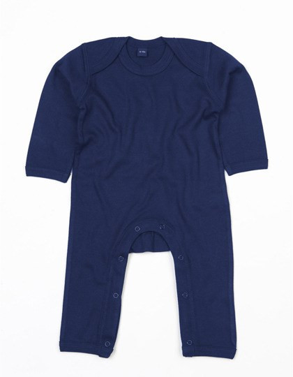 Bio-Baumwolle, gekämmt | Interlock | Langärmeliger Ganzkörper-Strampelanzug | Envelope-Ausschnitt | Ärmelabschluss aus identischem Material | Bein- und Halsöffnung | Beinöffnung mit farblich angepassten nickelfreien Druckknöpfen | Schmale Ziernähte an Arm- und Beinöffnungen