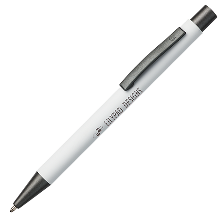 Der BARBADOS soft touch Kugelschreiber kombiniert einen angenehmen Griff mit einer luxuriösen Optik durch die spezielle 'Spiegel'-Gravur und wird mit einer blauen Mine geliefert.