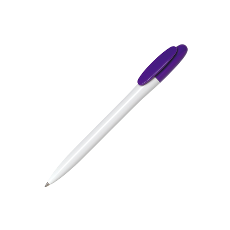BAY B500 BC Kugelschreiber Maxema, glänzende Flächen, deckende Farben, weißes Gehäuse, farbige Kappe, blauschreibend