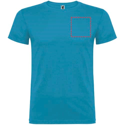 Kurzärmeliges T-Shirt mit doppellagigem Rundhalsausschnitt aus Elasthan, hergestellt aus schlauchförmigem Material für Erwachsene. Verstärkte und verdeckte Nähte am Kragen. Herausnehmbares Etikett. Das Modell ist 190 cm groß und trägt Größe L.