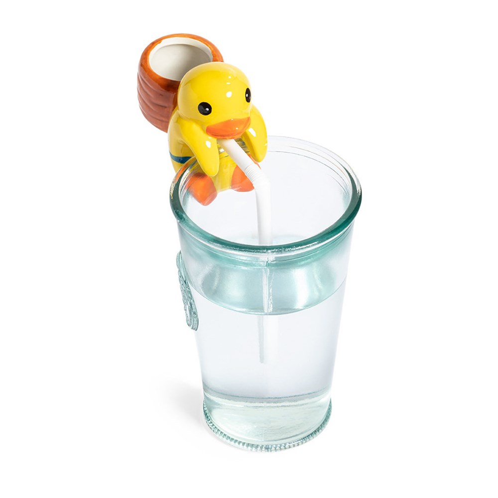 Saugender Blumentopf mit tollem Ente- und Kätzchen-Design. Einfach den Strohhalm ins Wasser... mehr