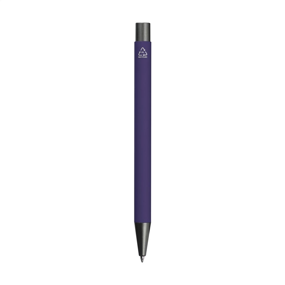 Blauschreibender Kugelschreiber aus recyceltem Aluminium. Das Gehäuse ist mit einer schönen... mehr