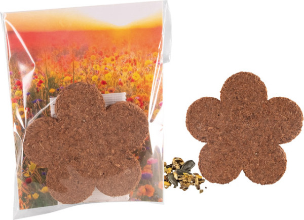 Die Blume aus Kokosfasern ist ein echter Blickfang. Zusammen mit den Samen einer bunten Blumenmischung ist es ein sympathisches Giveaway für Ihre Werbebotschaft. Platz für den Werbedruck ist auf dem Standardmotiv des Einlegers. Eine eigene Gestaltung ist ebenfalls bereits ab 250 Stück möglich.