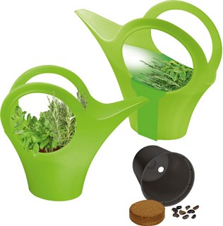 Inhalt: Kunststoff-Gießkännchen 0,2 l, Topf Ø 6 cm, Erdtablette, Samen: Kräutermischung