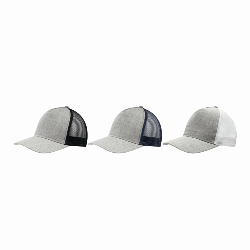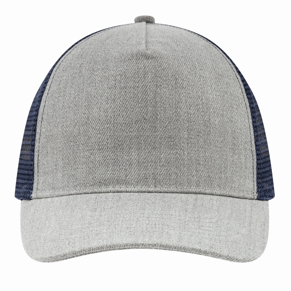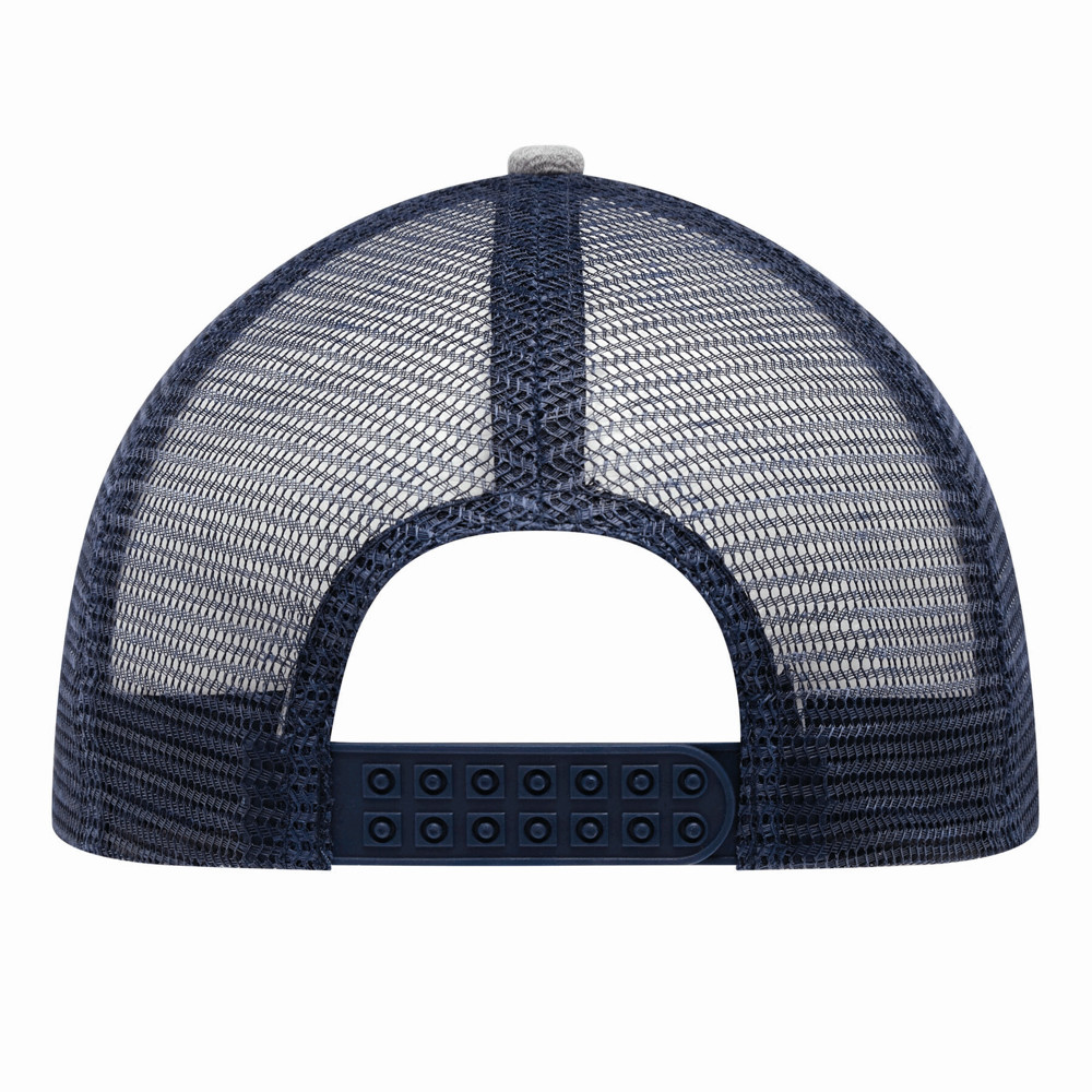5-Panel-Baseball-Cap CASUAL FIT, 2-farbig: verstärktes, meliertes Frontsegment, übrige Segmente aus Netzstoff, Knopf, größenverstellbarer, doppelreihiger Kunststoffverschluss am Hinterkopf